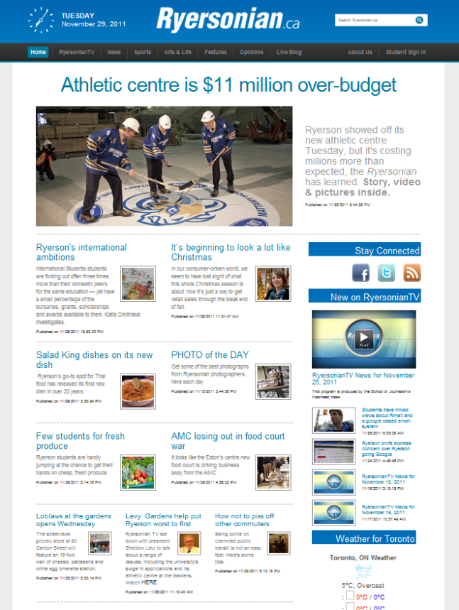In one day we used a live blog, a print story updated throughout the day, a photo gallery and a TV report to report about one of Ryerson University’s most important construction projects in its history.